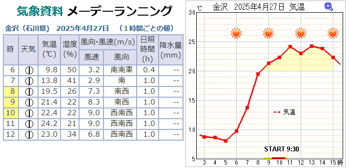 | ■メーデーランニング大会:気象データ=金沢=2025年4月27日=アメダス= | |