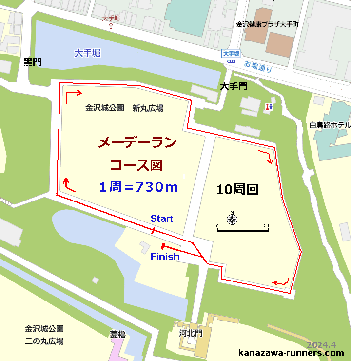 メーデー・ランニング【金沢城内ロードレース】:コース地図