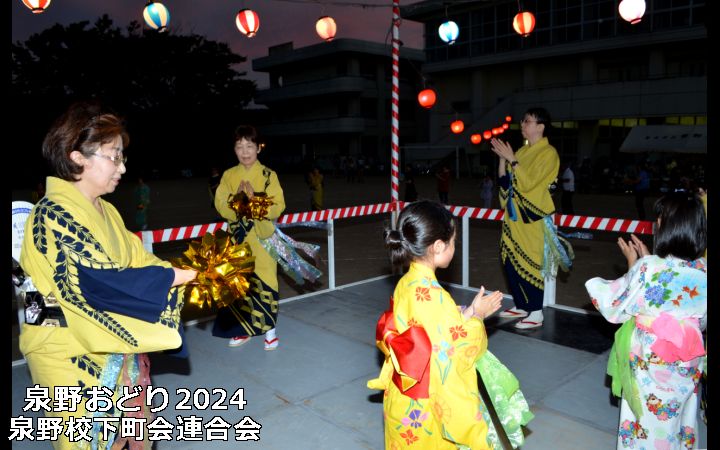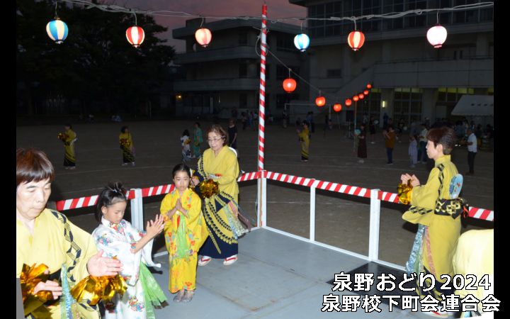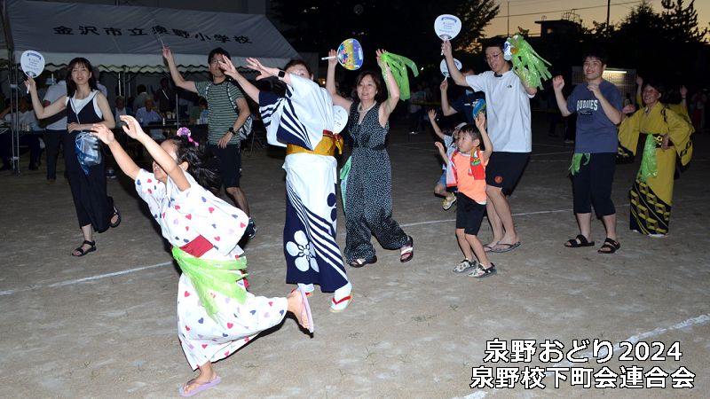 【泉野おどり2024_踊り曲】 ・百万石音頭 ・金沢ホーヤネ踊り ・炭坑節・越中おわら節 ・ドラえもん・ツバメダンス |