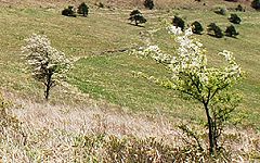 | 霧ヶ峰高原で点在しているコナシ(ズミ)の木。ちょうど開花を迎えている。 | ||