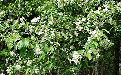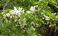| 乗鞍高原で点在しているコナシ(ズミ)の木。ちょうど開花を迎えている。 | ||