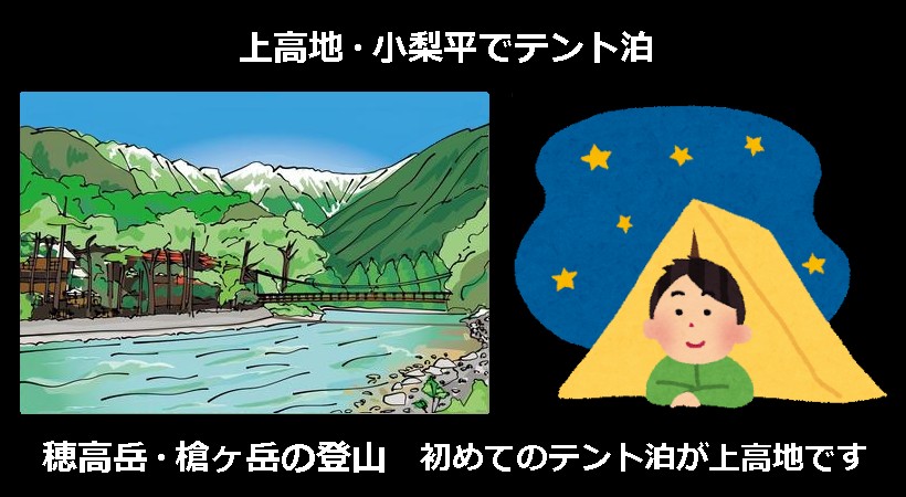 | 小梨平から穂高岳を望む | 小梨平から穂高岳を背景に | |