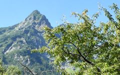 | 梓川沿いのコナシと焼岳 | ||