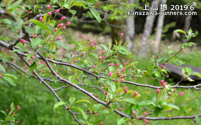 | 2019年6月2日。上高地・小梨平周辺を散策。 バス旅行2019は上高地。前回撮影できなかった小梨平のコナシの花はちょうど盛り。ジックリ撮影散策。続いて梓川右岸をウェストン園地に向かう。上高地温泉ホテル前庭のコナシもシッカリ咲いています。ところがウェストン園地のコナシはつぼみの状態です。濃いピンクの色から白い花への変身は2〜3日後なのでしょうか。 |