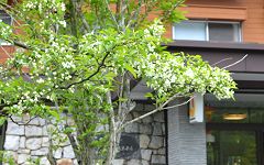 | 梓川右岸を進む | ホテル前庭にコナシの木 | 前庭のコナシは満開 |