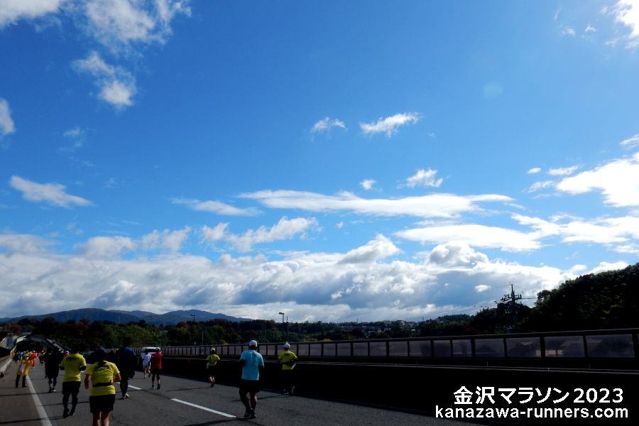 | 金沢マラソンは2015年の初回から連続参加しています。コースは地元。撮影ポイントは頭に入っています。この大会は雨模様の日が多く、空は刻々と変化していきます。気圧配置や前線通過などの影響で東西南北の空はまったく違う様相を見せます。青空が出るとラッキー。青空のなかで、変化しつづける雲を観察します。撮影ポイントで、そうした風情のある雲を見かけると上空にカメラを向けます。笑顔をテーマにランナーや応援・コース状況などを撮影していますが、空を大きく取り入れた構図も楽しんでいます。 | ||
