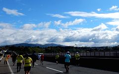 | 【37km地点】雨になりました | 雨ですが、西の空は明るい | 金沢マラソン【雪吊橋】 |