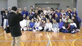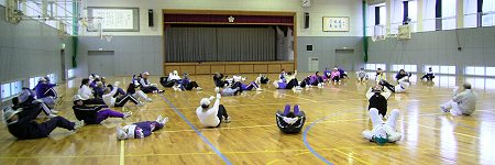 @天野会長:年賀状:『仲間は力なり。継続と挑戦は力なり。からだの学習をしよう。』 A例会出席表彰:小紙弘さん(150回)。 Bスマトラ沖地震の義捐金:新年会と次回の例会で募金します。 C練習風景から:今日は、雪。早朝の体育館の気温は4〜5℃です。 冬季の室内練習は、ストレッチで柔軟性を高めます。 今年も元気な清水利吉さんと岩橋さん夫妻。長老方のストレッチの様子を紹介します。 ●新年会:18:00〜 詳細は、『新春例会速報&新年会特集』 |
