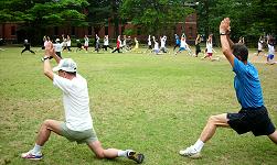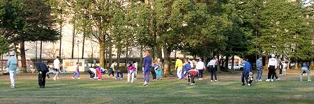 | 奥卯辰山サマーランニング:会場を奥卯辰山健民公園に移してサマーランニングが始まりました。 初日の7月30日は会員と一般参加者を含め約70名が出席。走力別に3グループに分かれて、広い芝生のコースを楽しみました。 |