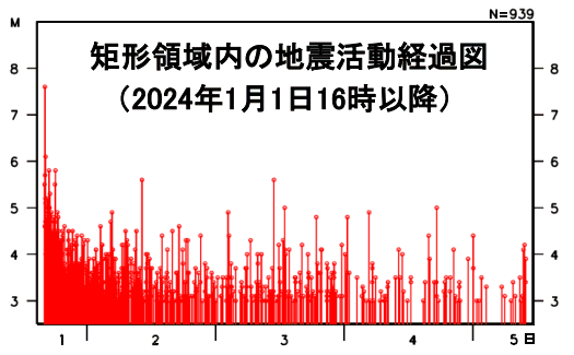 帯状な震央で余震が続く=2024年1月1日〜5日10:00
