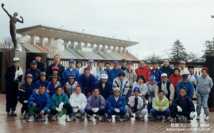 | 【行事名】初春神社仏閣巡り早朝ランニング 【参加者】28名 【集合】6時30分。県体育館。準備体操(トレーナー:泉)。6時45分出発 【コース】@尾山神社〜A尾崎神社〜B市姫神社〜C金沢東別院〜D鍛治八幡神社〜E石川護国神社〜F金沢神社〜G石浦神社〜県体育館 この頃の例会は、6時30分集合。会場は、中央公園。雨天時や冬季は県体育館で行っていました。 |