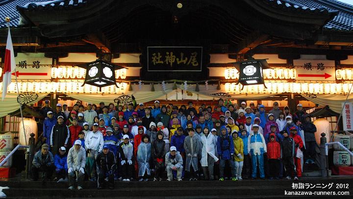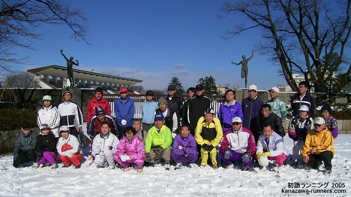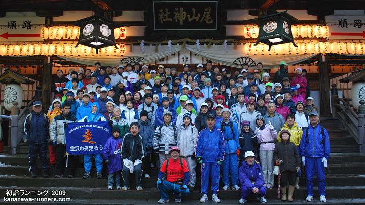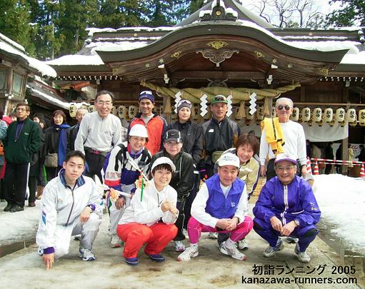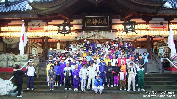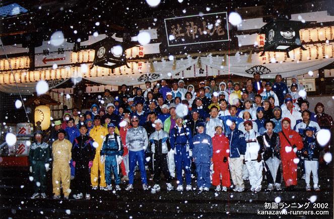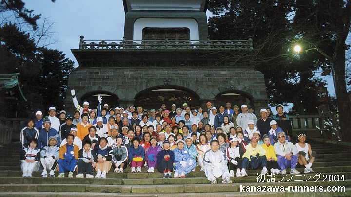 | 金沢中央走ろう会の走り初めは、1月2日の初詣ランニングです。金沢市内の10社寺を巡り、一年の健康を祈願しながら親睦を深めます。当初は会員の行事、今ではランニング愛好家の行事として定着し、家族連れも多く新たな仲間も増えています。 私は2003年12月の入会。この初詣でランニングは、会員として初めての行事参加です。どんな大会なのか、楽しみに参加しました。 |
