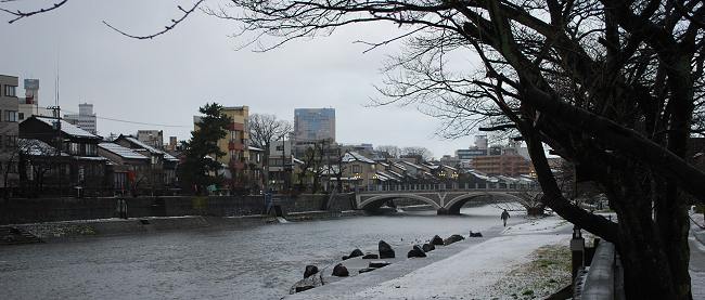 | 浅野川沿いを走る。中の橋から下流を望む。 | |