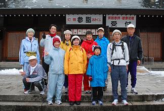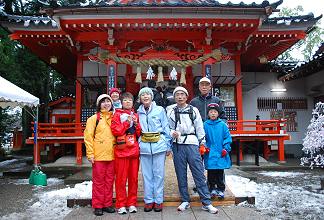| 最初の尾山神社で記念撮影してから巡回します。 |