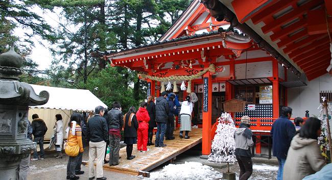 | 本殿。参拝後、ここで記念撮影します。 | |