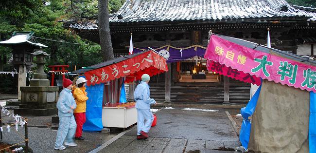 | 10社寺の中で一番カラフルなのが金沢神社。 学問成就で、時節柄混み合っています。 ここでは昆布茶でのどを潤します。 |