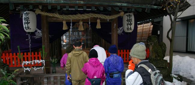 | 最初の尾山神社で記念撮影してから巡回します。 |