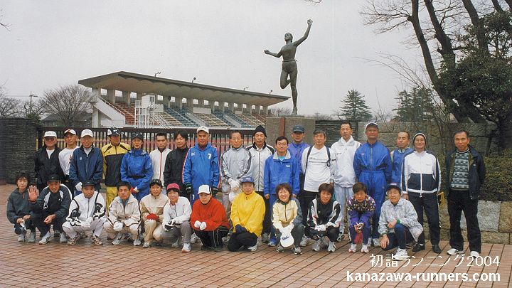 | 【2005年】白山神社コース。陸上競技場横で記念撮影。このあと、走りながら撮影しました。 |