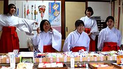 初詣ランニングの撮影は移動が速いので、各神社で参拝する余裕はありません。参加し始めた2004年と2005年の行事では各神社で賽銭を投じながら参拝していましたが、2006年からは最後の石浦神社で初詣と決めています。それでも、撮影に追われるので、帰路に参拝するようになりました。石浦神社は子供たちの七五三でお参りしたなど身近に感じている神社です。例年、ここで御神籤をひきます。 |