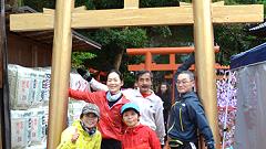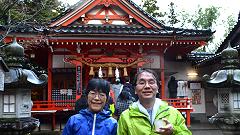 | 恒例の集合写真を撮影後。尾山神社での編集長の貴重な1枚です。手に持つのは撮影用一脚。 |