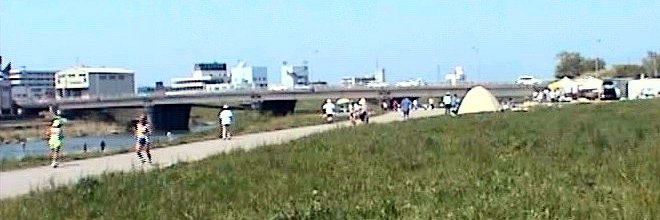 | 01:大豆田大橋。右端のテントが大会本部 | |