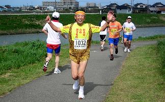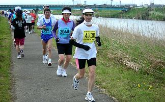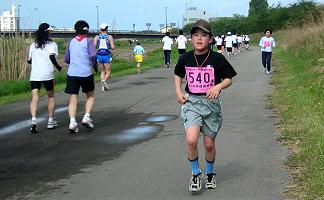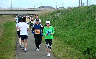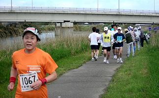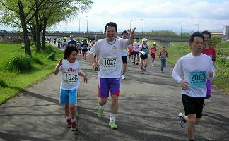 五月晴れの好天に恵まれ、爽やかな川風が汗を乾燥させてくれます。ランナーの列は細く長く続きます。マイペースで、ゆっくり・長く走る、健康ランニングを楽しむ人。ちょっと頑張ってみようという人。日ごろの練習の成果を試す大会です。