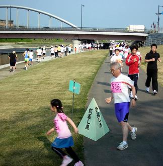 | 6447(08:08)_御影大橋を過ぎてスタートから1kmの地点で折り返します。 | |