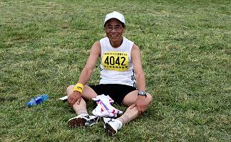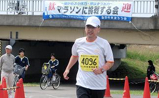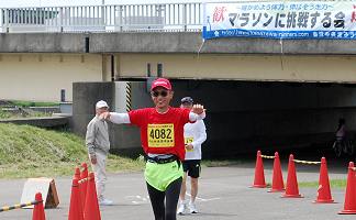 | n0263(12:32)_4時間半ランナーのフィニッシュ。編集長は走り終えてから、皆さんの表情を狙います。 | |