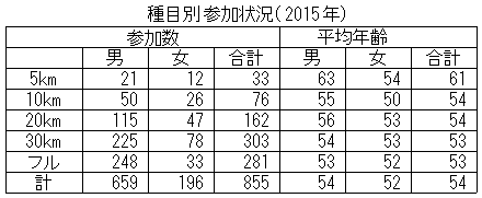 | ■マラソンに挑戦する会:種目別参加状況:2015年大会 |