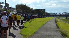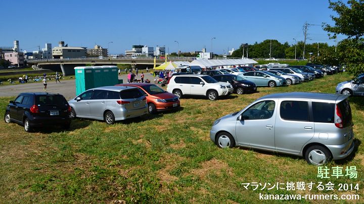 ○駐車場について秋の大会に代わったことで、春の大会以上に駐車場の不足が問題になってきました。橋詰めの駐車場・芸術村や企業などからお借りしています。スポーツの秋・芸術の秋。5月3日に比べて、周辺での行事が多くなっています。借用できる台数の制限があります。そうした中でトリムマラソン大会の倍以上が必要です。不足分を会場の河川敷の草地を利用することにしました。雨天時は、水を含むので足元が悪くなりますがご辛抱ください。また、相乗りなどの協力をお願いします。 |