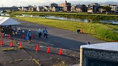 | ●秋の金沢。犀川河川敷コースを楽しみます。 | |