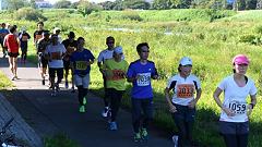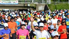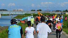 | 富山清流マラソン。快晴、立山連峰もよく見えます。 |