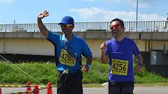 | 【工夫しながら続けたい】 いつまでも元気な撮影スタイルを続けれないことは分かっています。後任がでてこないので、体力に応じて対応していくしかありません。マラソンに挑戦する会で、ランナーの皆さんを応援しながら撮影する楽しみがあるから、ランニング練習をしているといっても良いくらいです。 勤労者体育協会の能登島ロードレースも競技役員としてコース監察・写真を担当して11年が経過しました。7月、30℃の気温の中、ハーフマラソンの部をMTBで並走しながら撮影します。途中、ランナーの様子を見守りながら応援、故障者などが出ると対応することもあります。起伏のあるコースなので体力勝負のところもあります。常連の皆さんと交流できるのが一番の楽しみなのはマラソンに挑戦する会と同じです。事務局長のNさんが担当を続けている限りお手伝いしようと思っています。同年齢なので、どちらの体力が持つか、楽しみでもあります。 |