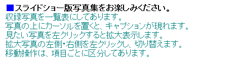 | ●スライドショー版写真集をお楽しみください。 | |