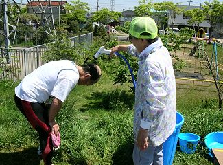 | 野村さんのシャワーサービス(2005) | 下流側給水所:アーさっぱりしました。 |