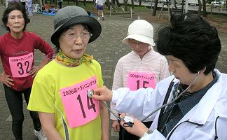 | 参加資格は60歳以上。マイペースの目標タイムの正確さを競います。フィニッシュ後、心拍数を計測。 | |