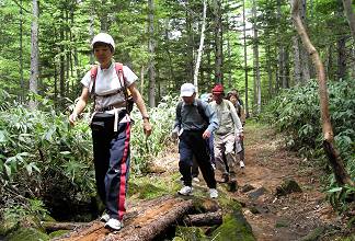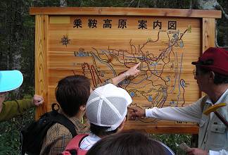 | 東大ヒュッテ前。案内板でルートを確認 | 女小屋の坂径 |