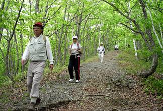 この乗鞍高原は20代にスキーを楽しんだ地です。ドライブでも2回来ています。長野県から頂上経由で岐阜県に抜けました。長野県側の道路は未舗装部分が多く、山頂を越して、岐阜県側に入ると立派に舗装された道路に代わったことを覚えています。野麦峠越えでも県境で道路が見違えるように変化しました。道路整備にかける県予算の違いが出たものです。こうしたドライブもマイカー規制により昔話になってしまいました。 私はランニングより山岳派。昨年は上高地マラニックで、河童橋から岳沢小屋まで往復しました。今回はバス利用を組んで頂上まで登りたかったのですが、長野県側からのバスは未だ運行されていないので、登山はできません。高原散策は、土地勘がないので、今回は登山とランニングの両方を準備しました。弁当を持ってのランニングは不便なので、散策後の残り時間の様子を見て、ランニングを楽しもうという計画です。春のフルマラソン3本を走り終えて、6月から登山やゴルフへの練習に切り替えます。先週は医王山の鳶岩周辺で足慣らしをしたところです。 登山にはGPS時計を携帯しています。マラソンの計時用に購入したもので、標高も表示されるのがうれしい。歩行距離と標高を確認しながら歩ける楽しみが加わります。今回は高度差約300mの間での上り下りで、歩行距離は9.7kmでした。 夜泣峠からき女小屋の森へ。道はかなり急な下り坂が続きますが、唐松の落ち葉が柔らかなクッションになってとても気持のよい路でした。一の瀬テント場付近は広々とした白樺林の雰囲気が気に入りました。あざみ池を過ぎて善五郎の滝に向かう上り坂は、昼食で飲んだビールがちょうど効いてくる時間帯です。 14:30頃、集合場所の観光センターに到着。私にとってはノンビリの散策です。今回で土地感もできたので、チャンスがあればランニングも試してみたいと思います。 |