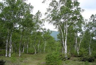 | 一の瀬野営場。ここで昼食。 | 白樺の林 |