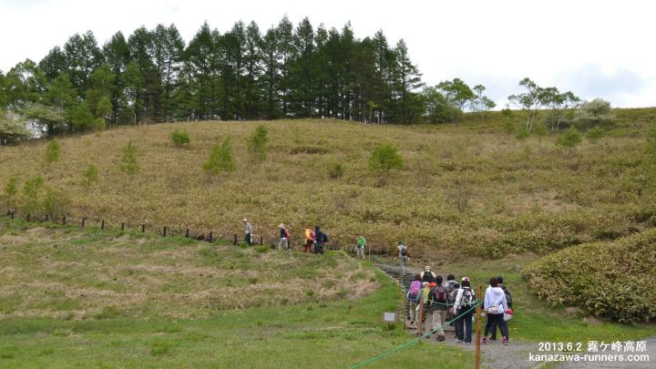 バス旅行は、上高地・乗鞍高原・霧ケ峰高原・野尻湖の4ケ所を順に行っています。今回は霧ケ峰高原の2回目。6:00金沢(中央公園)出発。11:30前に車山高原駐車場に到着。ここで数班に分かれて車山登山や高原散策・ランニングなどを楽しみます。集合場所は霧ケ峰駐車場15:00です。 【班分け】 A:ランニング B:ハイキング(健脚) C:ハイキング(一般) D:ハイキング(リフト利用) 編集長は、前回(2009年6月)は健脚組みで、車山から湿原の散策を楽しみました。今回は幹事なので、ハイキング(一般)で、皆さんの安全を確認しながら、シンガリを歩きました。 |