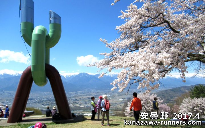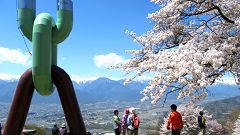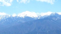 | 往路=白馬連山の眺め | 長峰山は桜が満開 | 長峰山から北アルプスの眺め |