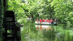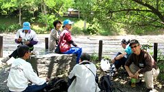 | わさび農園=木陰で昼食 | わさび農園の清流 | わさび農園の清流 |