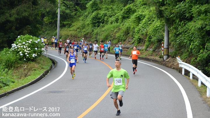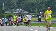 これまで、スタート時の撮影は、この坂の途中で撮影していましたが。2回に分けたことで、スタートライン付近での撮影もできるようになりました。最初のスタートは道路に出るところで撮影。2度目のスタートは、整列を撮影し、スタート直前に坂へ移動、ランナーの来るのを待ちます。末尾を撮影後、MTB(自転車)に乗ってランナーを追いかけます。上り坂の途中、消防署が次の撮影スポット。坂を上るランナーを狙います。ここまで追い越したランナーの分だけ沢山撮影できます。この後ランナーと並走、追い上げしながら撮影を続けます。前半はかなりのアップダウンが続くので、結構ハードな撮影行です。 |