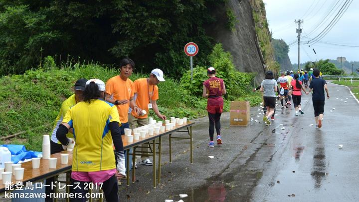 前日(1日)は未明から大雨となりました。能登地方に大雨警報、七尾線は始発から運休という状況です。午後から前日受付があるため、スタッフは10時集合です。強い雨の中、金沢から会場に向かいます。午後から雨も小降りになってきましたが、断続的に降ってます。給水所の設営も翌朝に変更。