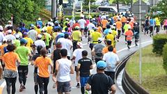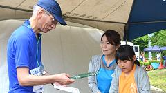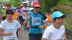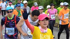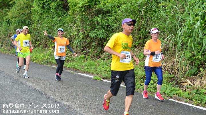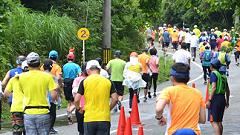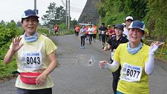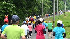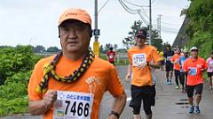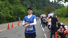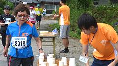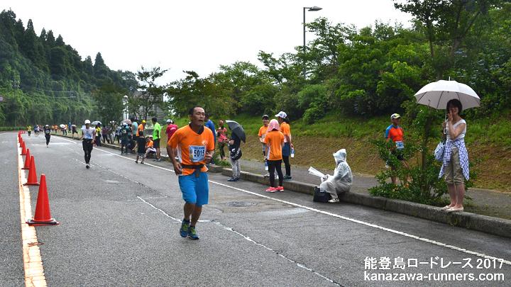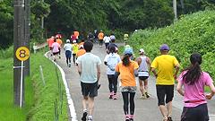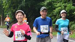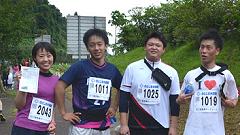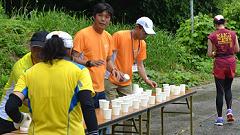 今大会は雨模様、蒸し暑い日となりました。ハーフマラソンの皆さんと一緒に汗をかきました。 |