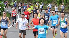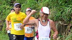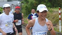 毎回ハーフの部を選手と一緒にコースを巡りながら撮影します。アップダウンの多いコース、上り坂では自転車を押して上りますが周りのランナーに負けない速さ(?)を心がけています。笑顔で走ろうを合言葉に撮影する編集長。元気な姿を見せられないのでは言行不一致です。ランナーの列を徐々に追い上げ、2時間フィニッシュの撮影に間に合わせる。監察員として、故障者の対応もあります。72歳のオジイチャンのやる遊びではなさそうです。