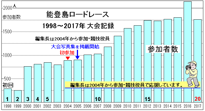 | ■能登島ロードレース=2004年大会から参加・競技役員(撮影)で大会を応援しています。 | |