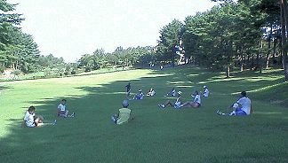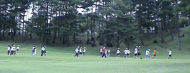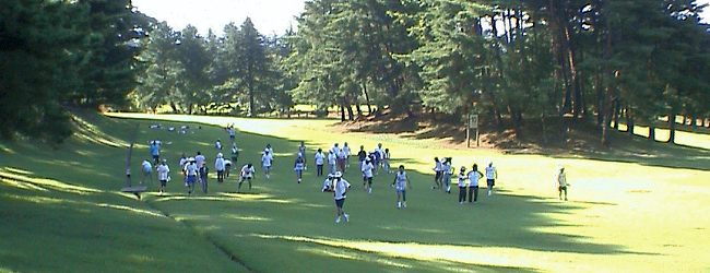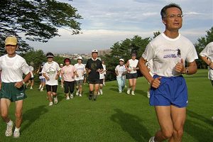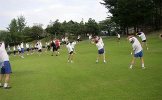 | 2004年度の奥卯辰山サマーランニングが始まりました。広い芝生公園での練習です。 |