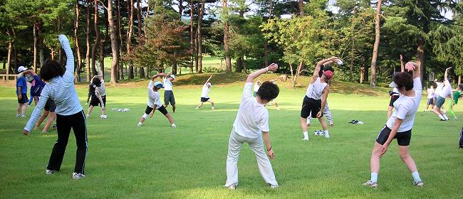 | 奥卯辰山サマーランニングが始まりました。広い芝生公園での練習です。 | |