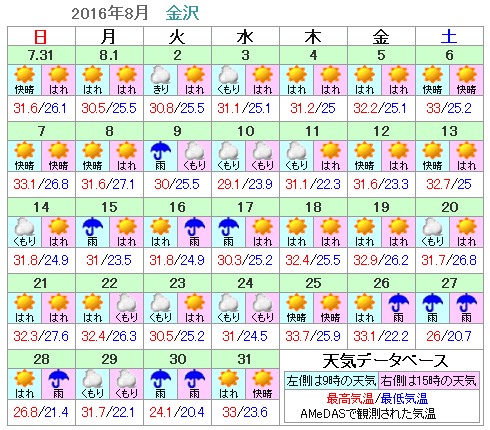 | ■気象データ | 金沢:アメダス=2016年= |